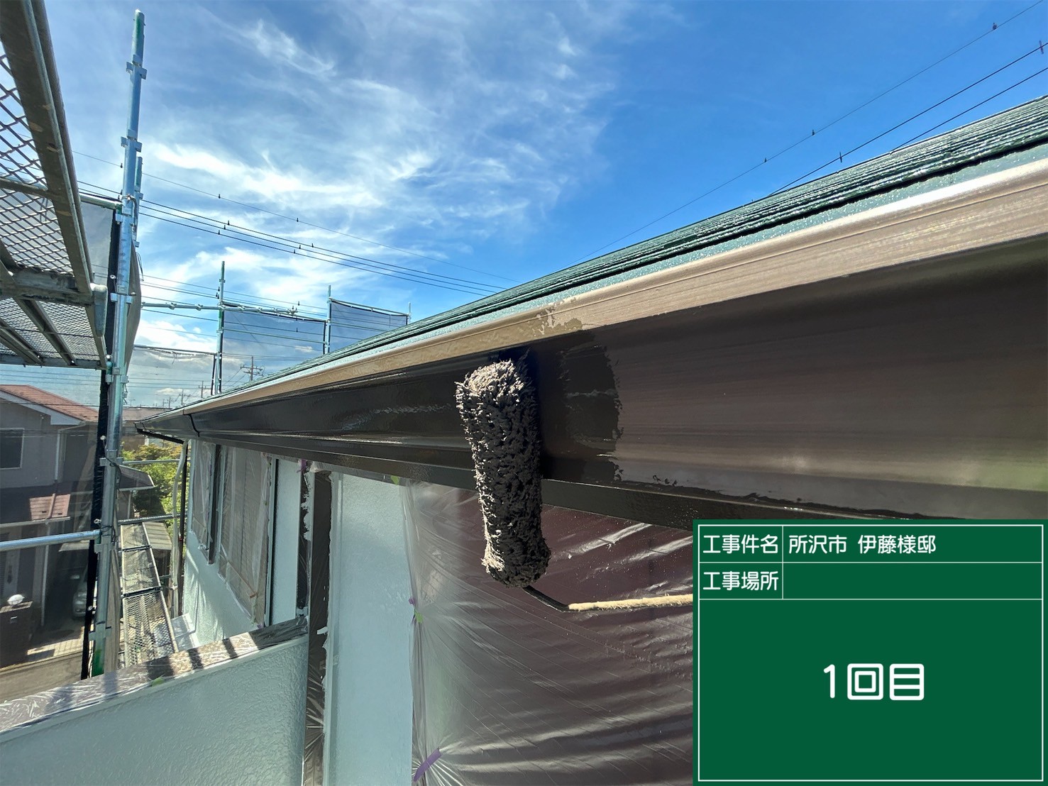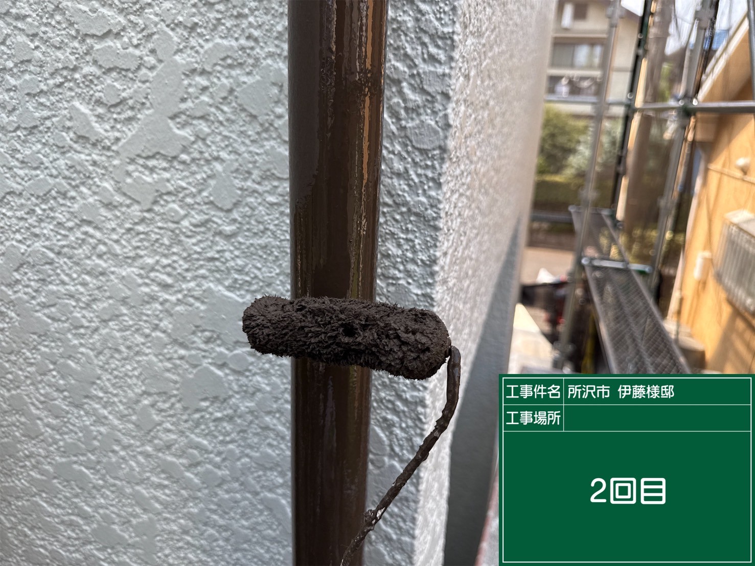 ~東京都東村山市での外壁塗装工事(下塗り)~