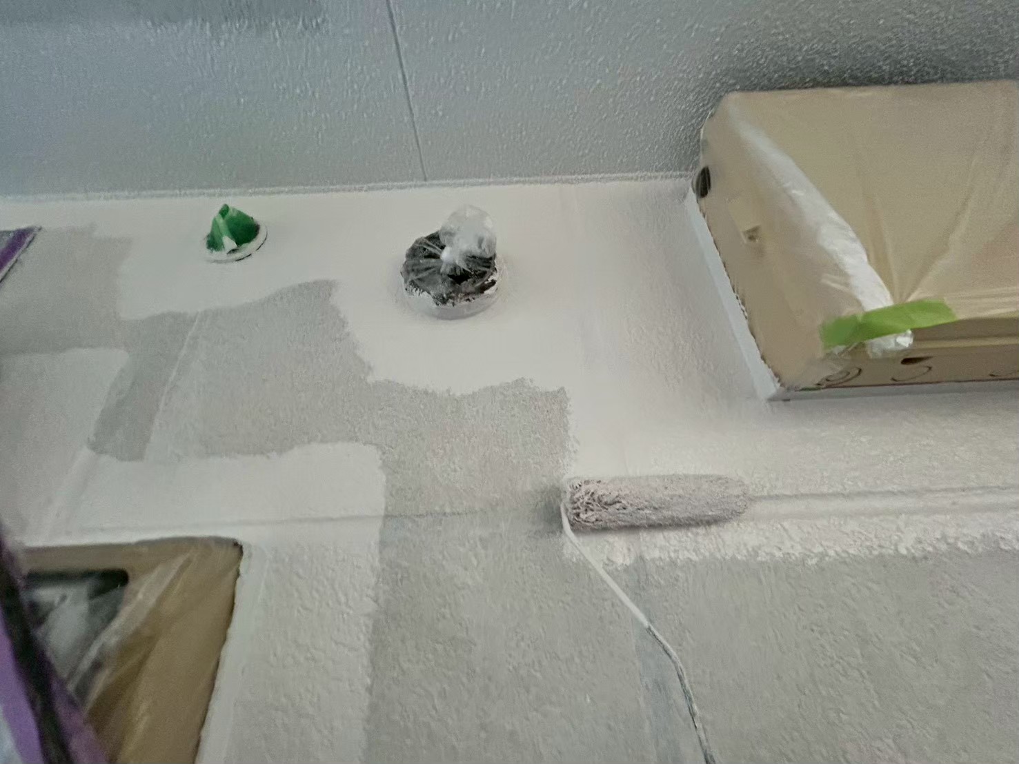塗料を適量塗布し、仕上がりの美しさと耐久性を確保します。ローラーや刷毛の力加減が重要で、厚すぎると垂れ、薄すぎると耐久性が低下します。