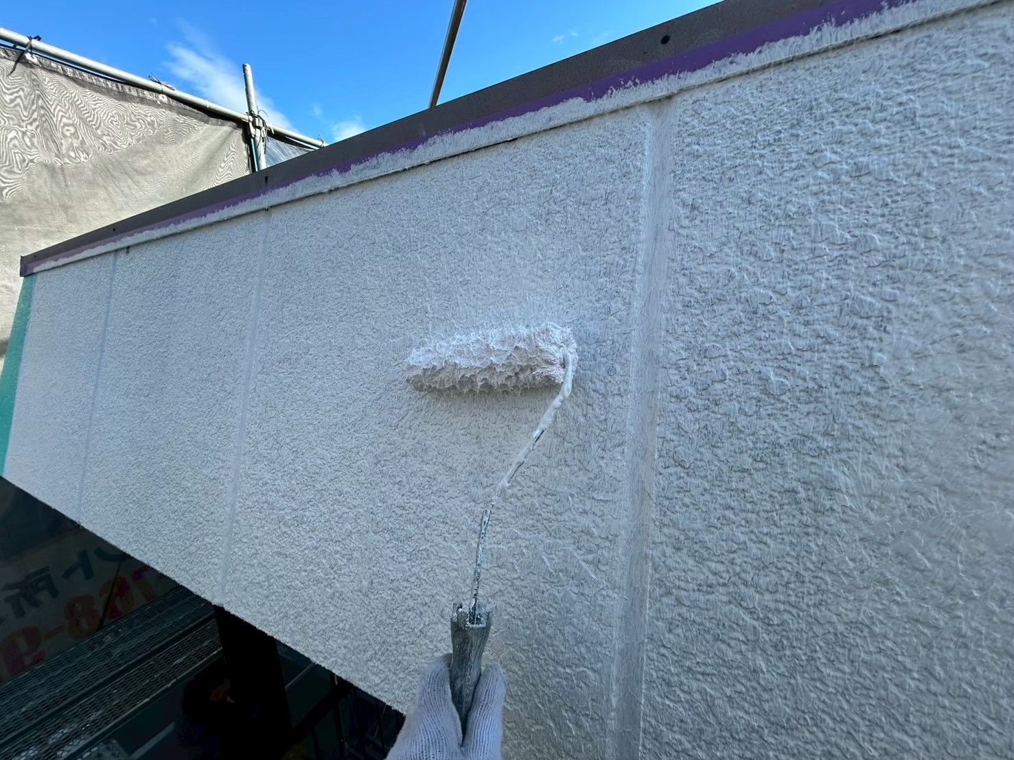 外壁のひび割れや穴を埋め、表面を研磨して塗料の密着を良くします。建物の劣化状態によっては数日かかる場合があります。